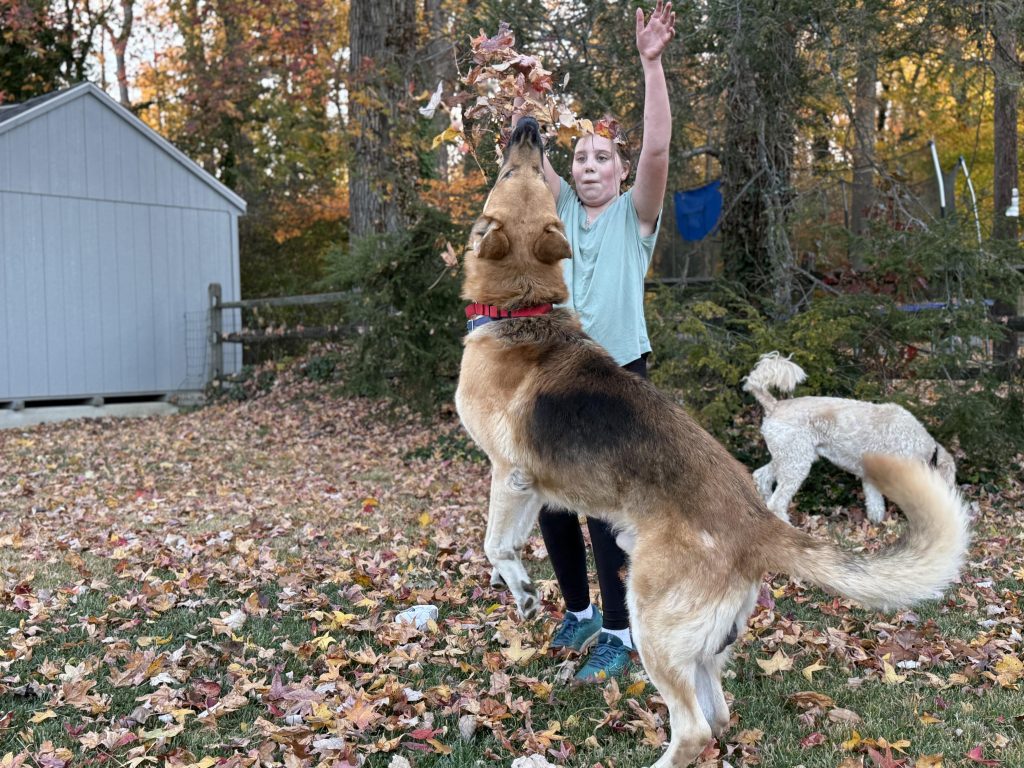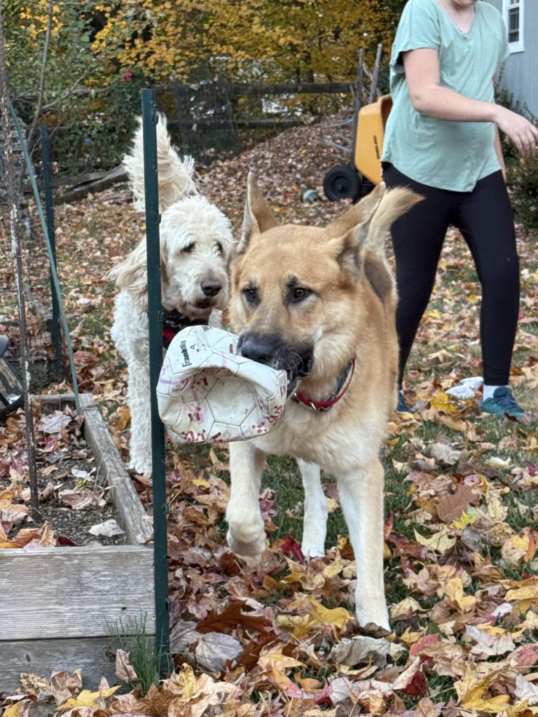 Knox is an oversized German SHepherd who has great manners. He does have some separation anxiety and has had an occasional counter surf but generally he is well mannered, loves playing with adults, kids and dogs. He is about 4-5 yo and housebroken. He will go in a crate but is skilled at jailbreaking. He loves fetch, chasing friends and some tug of war/keep away games. He walks pretty well on a leash. He is a well-mannered guy who became a stray and seems to want to make sure that is not repeated. He did not like a kennel setting but loves his foster home. If interested email gabrielsgsdrescue@gmail.com for