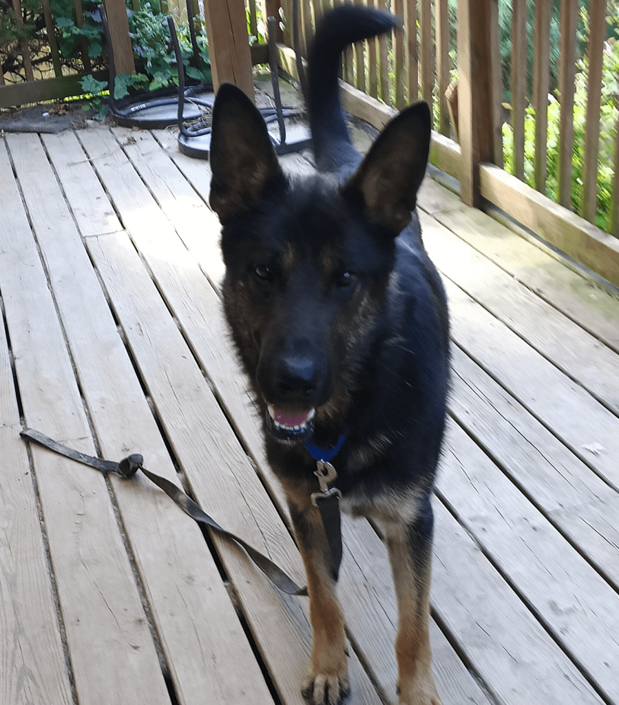 ZANE – Zane is a 3 year old bi-color German shepherd. He weighs about 75 pounds . Zane is utd n shots, neutered and HW neg. Zane had been found as a stray. Everywhere Zane goes he makes friends. Zane is a great guy. He sticks with his person and will do whatever you are doing. He can lay quietly or wander trails with you. He is great at fetch. He is happy and comfortable in his own fur. He knows some commands but shows only a little knowledge of leash manners. He can learn. He likes other dogs and is not such a fan of cats. He could learn the skill but he has not had exposure. He loves people and bonds quickly. He likes toys but would rather be with his person then wander away. He likes his yard but wags like crazy to be inside a home. He is a sweet, happy dog who shows lots of joy with the least effort at making him feel like he belongs. He is a gem of a shepherd. If interested in an adoption application, kindly email gabrielsgsdrescue@gmail.com.